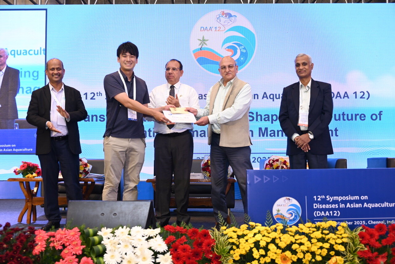 2025年9月23日~27日にインド・チェンナイで開催された、12th Symposium on Diseases in Asian Aquaculture(DAA12, 第12回アジア魚病学会)において、本学大学院生の吉野友晃さんがBest Poster Presentationを受賞しました。