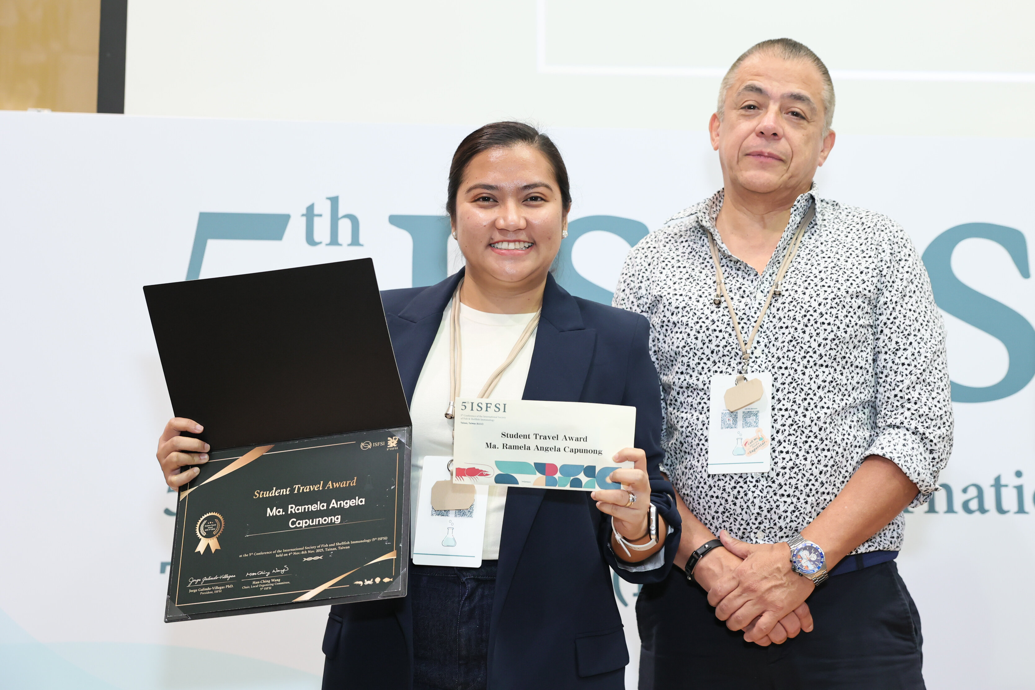 2025年11月4日~8日に台南(台湾)で開催された、5th Conference of the International Society of Fish and Shellfish Immunology(第5回国際魚介類免疫学会)において、本学大学院学生のMa. Ramela Angela Bermeo-CapunongさんがStudent travel awardを受賞しました。