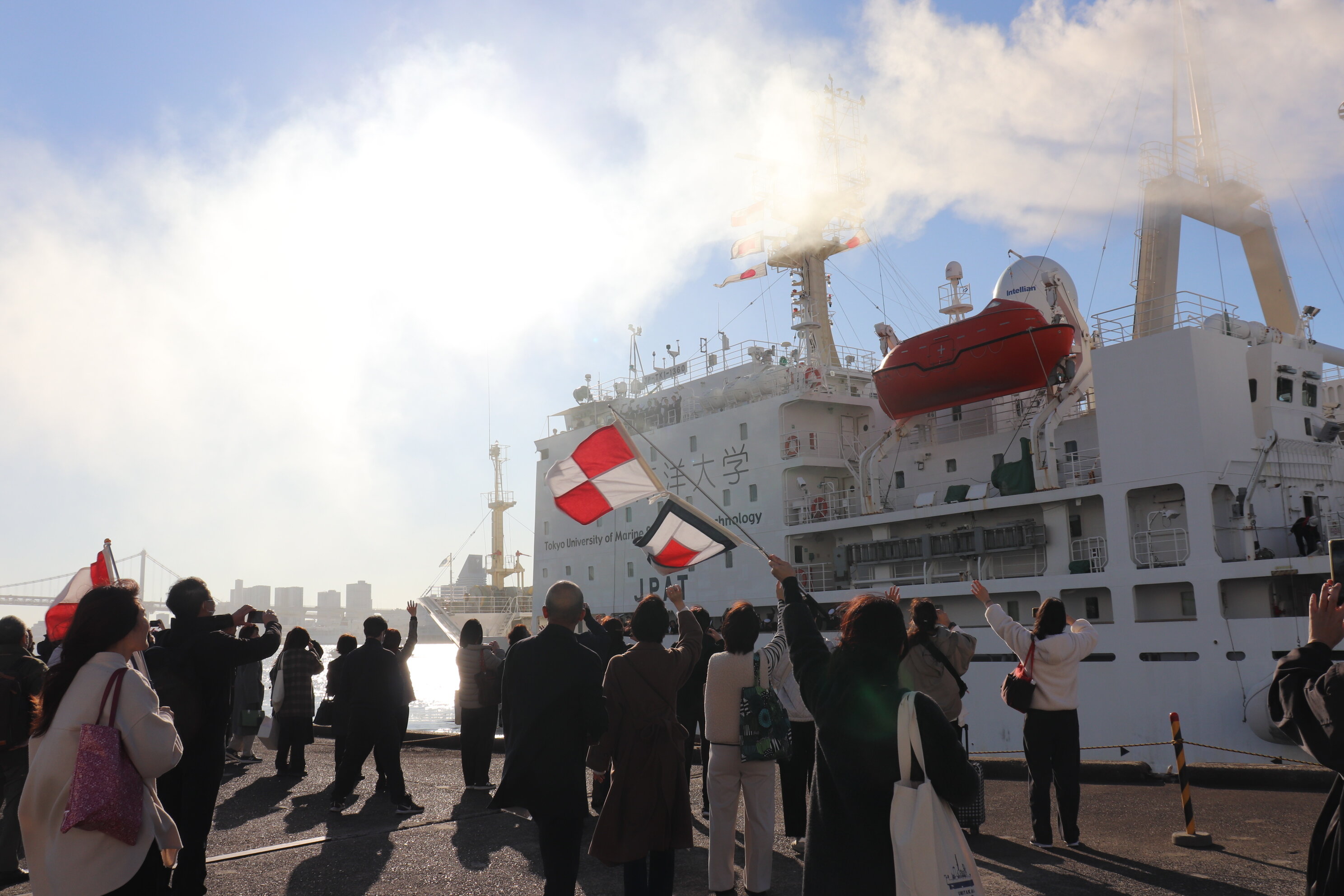 帰港は令和8年3月4日の予定です。最新の航海状況は、海鷹丸の第78次航海のページに掲載されますので、ぜひご覧ください。